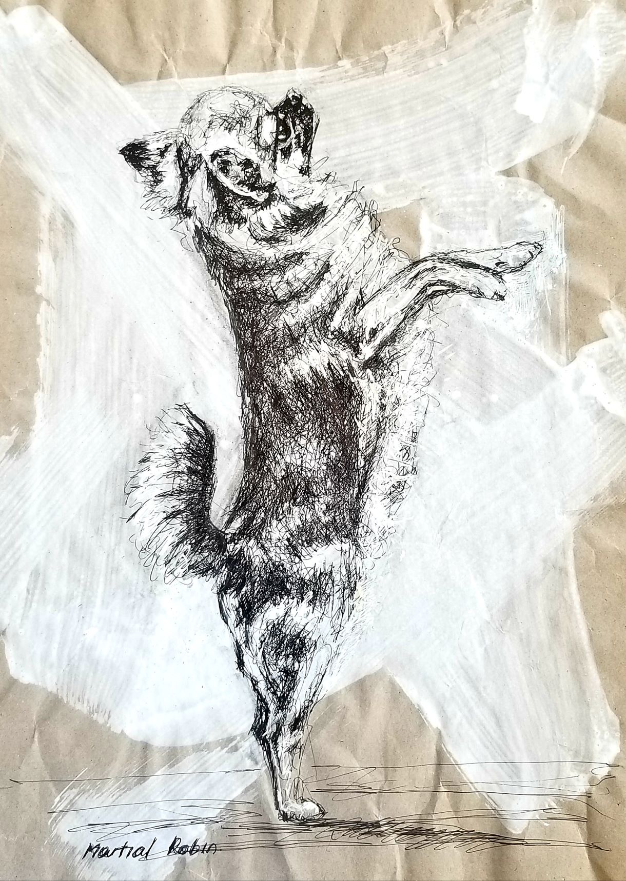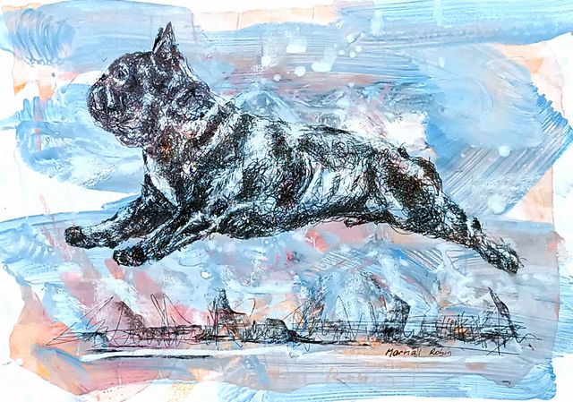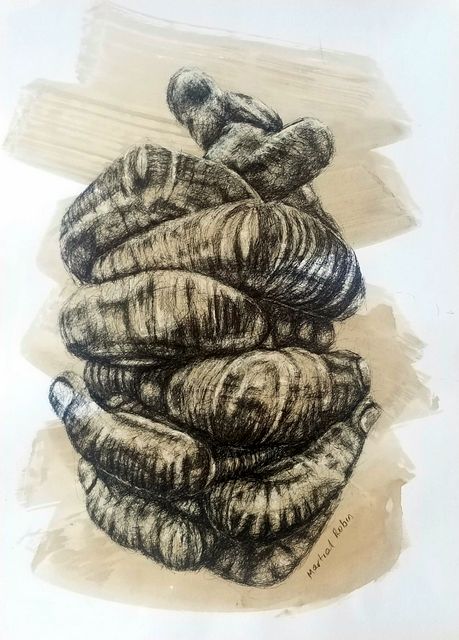 Le travail à l’encre est un retour à la source de ma passion artisitique : le dessin. A l’opposé du dripping, il me permet de travailler le détail en y ajoutant d’autres médiums comme le collage et l’acrylique.